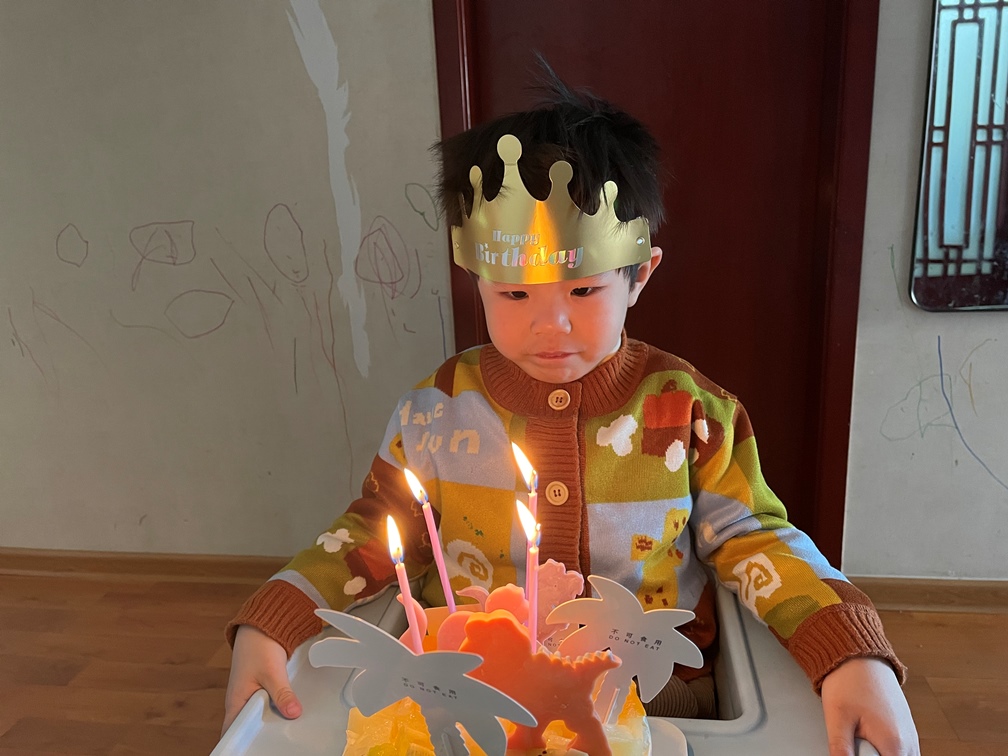 4月1号,阳阳满四周岁了,给他过了一个简单的生日。只有我和他,父子两人。